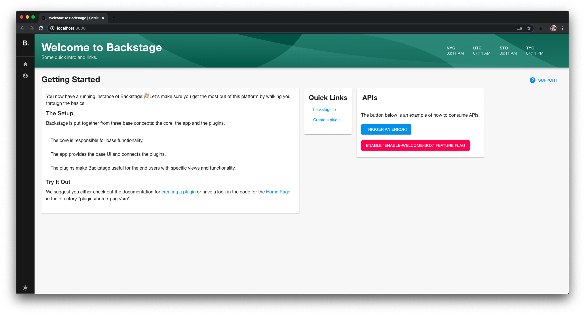 We wanted to make getting started with Backstage as easy as possible. Even though Backstage is still in the early phases of its development, we believe it is important for our users to get a feel for what Backstage really is.